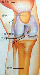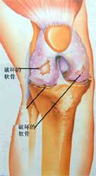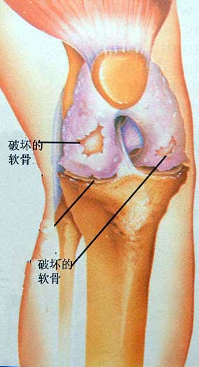 病损的膝关节 当膝关节的一个或几个部位病损后,关节活动将会受到影响。时间长了,软骨开始碎裂或磨损。由于软骨不能自我修复,损伤逐渐加重。起初仅感到一点僵硬,当骨与骨直接摩擦时就会出现疼痛。