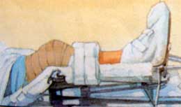 在恢复室 手术后,您将送入麻醉后恢复室,或被直接送回病房。有人密切监护您的情况,并给予止疼药。您可能还要留置导尿管和伤口引流管。膝关节部位可能要使用CPM(持续性被动活动器)来活动膝关节,防止僵硬。