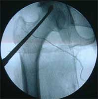 优点: 采用隧道减压、死骨刮除、骨形态发生蛋白植入、异体腓骨支撑治疗股骨头坏死,获得良好疗效。 创伤轻微,切口仅为3—5CM,不损伤关节囊血液循环,关节活动功能好。对年轻的、中早期股骨头坏死的治疗有极大价值。