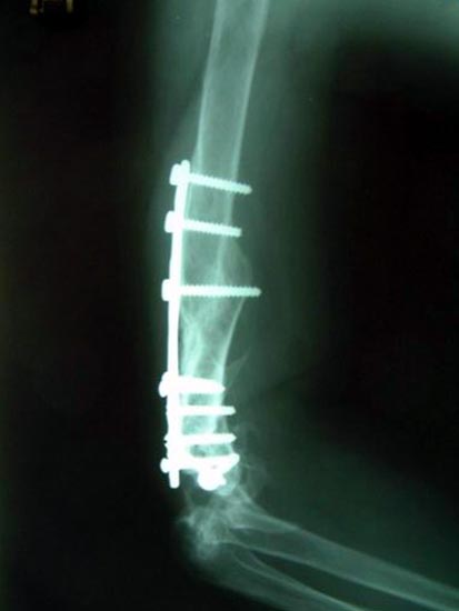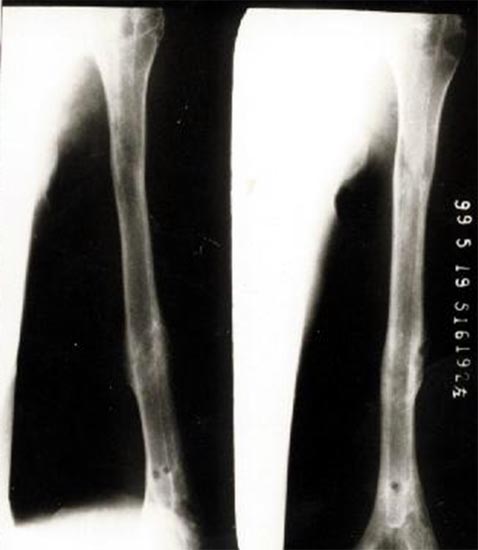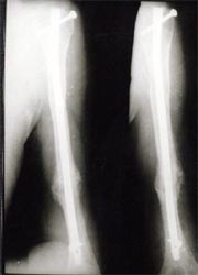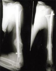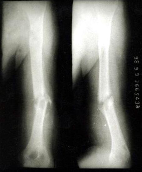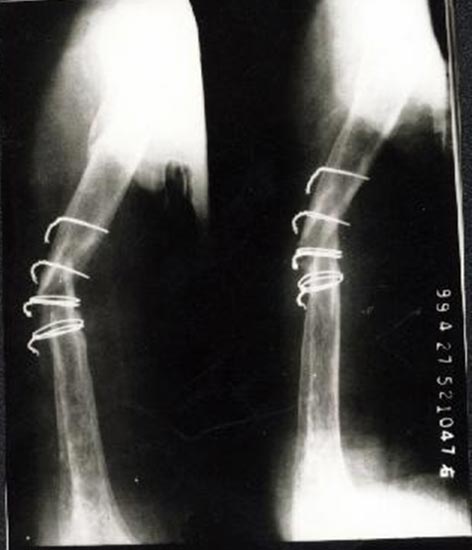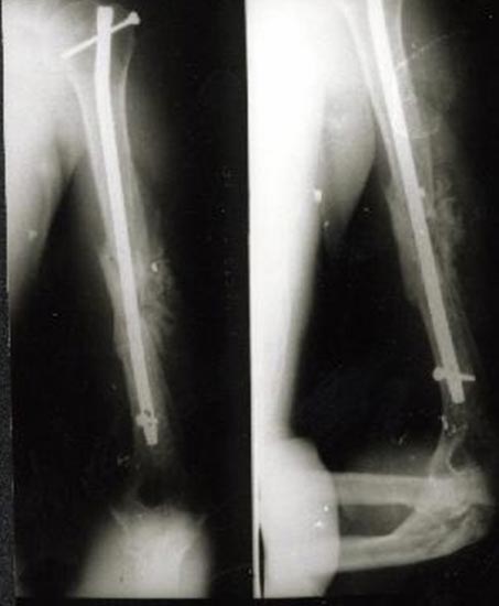 病例二、患者女性,20岁,肱骨中段骨折1年,骨不连形成。