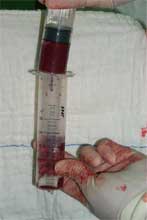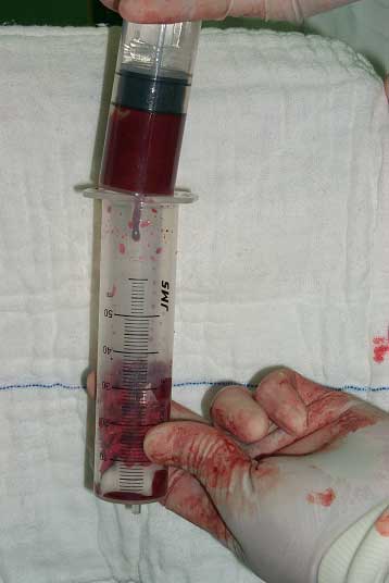 大段异体皮质骨,用于桥接骨缺损 将异体骨装入针筒,抽取患者红骨髓滴入松质骨