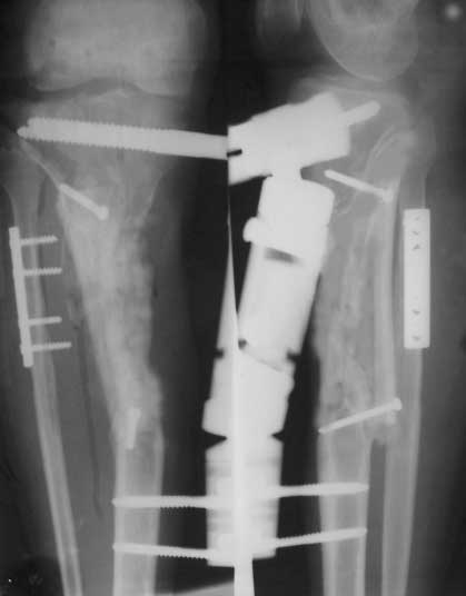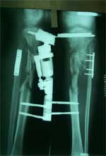 术前X线片,骨折后2年骨缺损、骨不连 术后6个月X线片,新骨桥接骨缺损