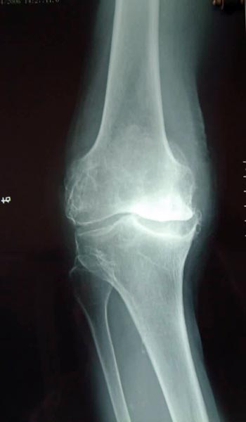 患者严重膝骨关节炎,关节软骨破坏,明显疼痛,行走困难