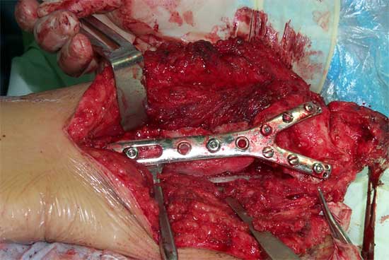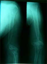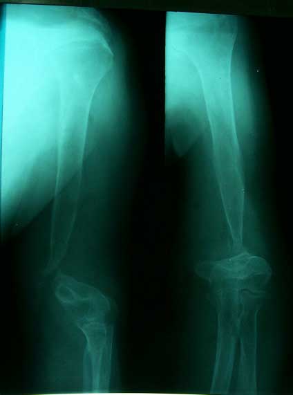 恢复上肢长度,大块异体骨植骨修复骨缺损、Y型钢板固定 术后X线片,显示骨缺损已经愈合