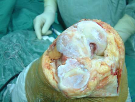 图这是手术是看到的关节软骨破坏情况,膝骨关节炎晚期软骨破坏,会在活动时产生剧烈的疼痛。 膝骨性关节炎或类风湿关节炎可以造成关节软骨破坏,引起疼痛活动障碍 主持人:对于以上这些不同的关节疾患,治疗的方式有哪些不同呢? 李亚非:先来谈一谈骨性关节炎,骨关节炎多发于中老年女性。早期患者会感觉到上下楼疼或下蹲时疼痛,可以运用消炎镇痛类药物进行治疗,还可以在关节腔内注射如润滑剂、激素药,早中期患者还可以进行关节镜治疗,到了晚期甚至还要进行人工关节置换。 主持人:首先请您介绍一下什么是人工关节? 李亚非:人工关节是人们为挽救已失去功能的关节而设计的一种人工器官。关节置换术并不是“将人的关节切除再换上人工的不锈钢关节”,而是仅仅將已磨损破坏的关节面切除,安装上由耐磨损的合金、聚乙烯制成人工关节,代替患者受损害骨和软骨,就象给坏牙安装一副"牙套",使患者恢复正常的生活。 人工关节置换手术为成熟可靠的手术,已经成为世界公认的处理严重骨关节炎的有效方法。在全球范围内,每年有超过百万的病人接受此类手术。人工关节置换可以很快的解决晚期关节炎患者的疼痛,同时恢复关节的功能。 请大家看一下最常见的人工膝关节的基本结构示意图。