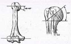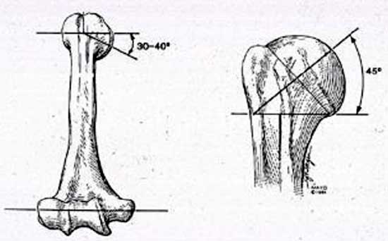正常的肱骨头后倾示意